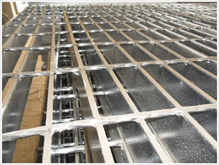热镀锌钢格板是由负载扁钢和横杆按一定间距经纬排列,在高压电阻焊机上焊接而成原板,经切割、切口、开孔、包边等工序深加工而成客户要求的成品。